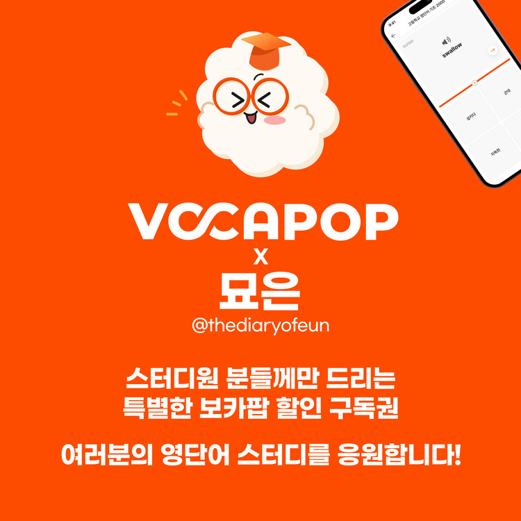 보카팝에서 묘은(@thediaryofeun)님의 영단어 스터디를 지원해요!